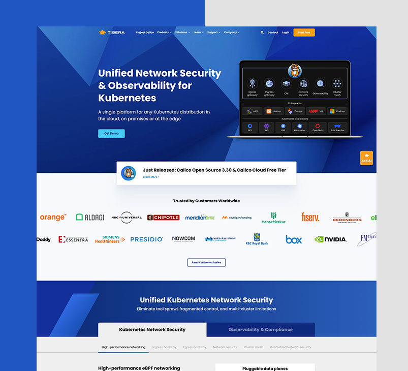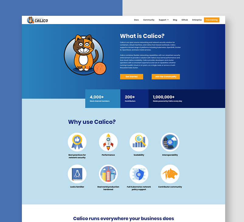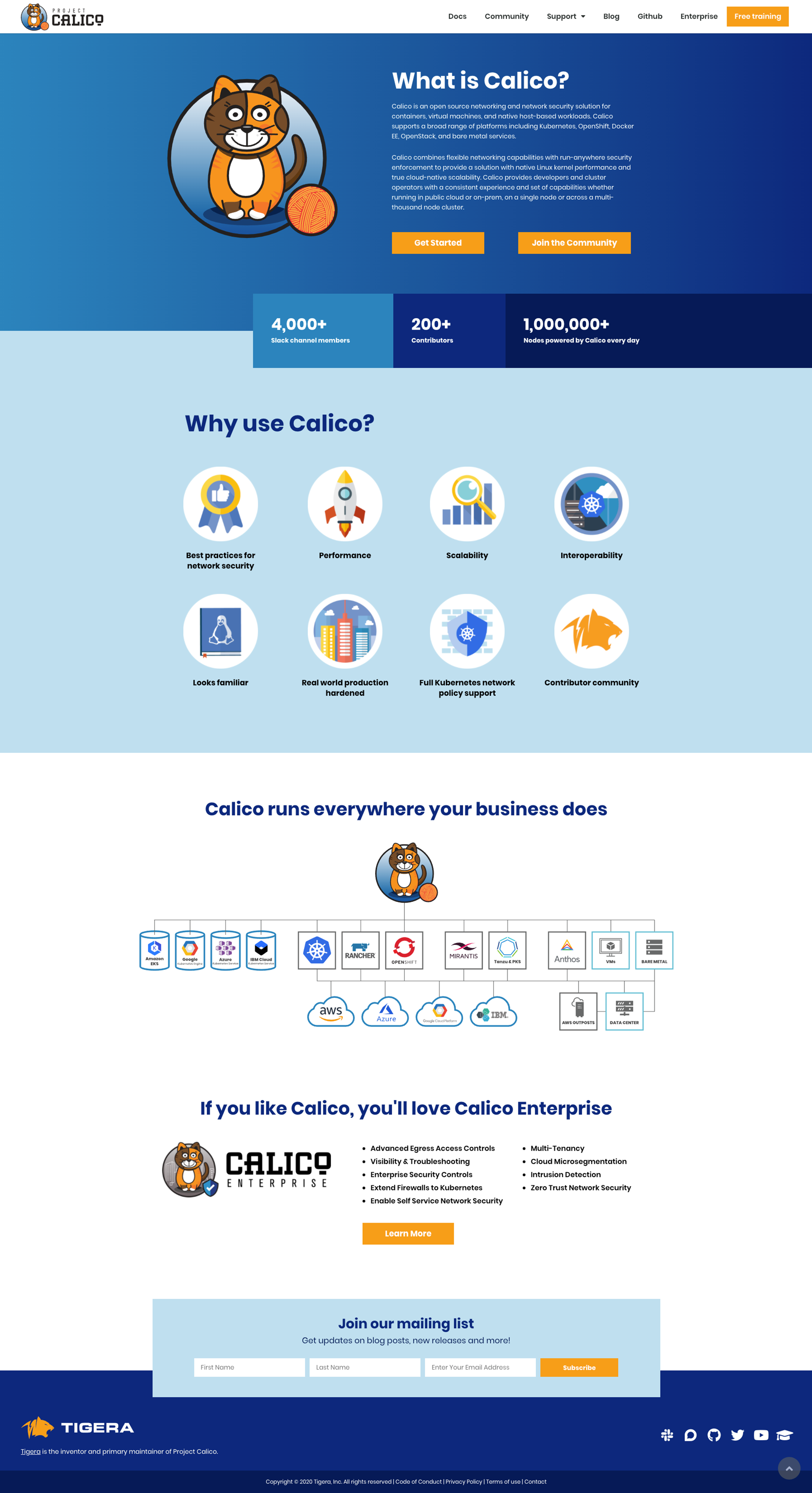 • Designed / developed a website of Project Calico, an open-source networking and security solution for containers and Kubernetes, and campaign landing pages